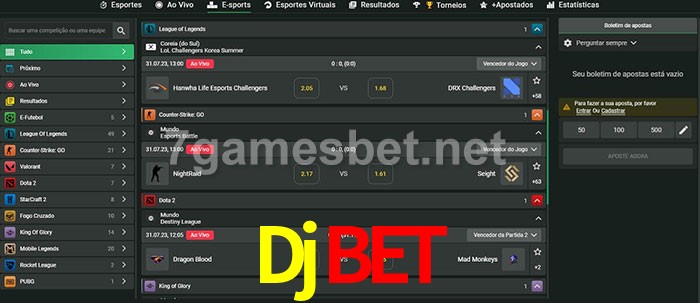 O Djbet oferece uma grande seleção de opções de apostas em e-sports com probabilidades competitivas